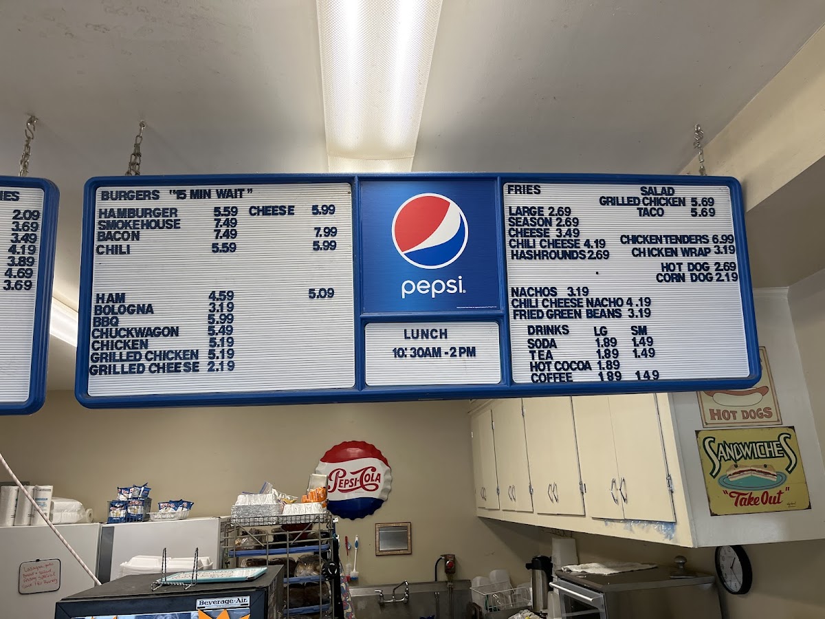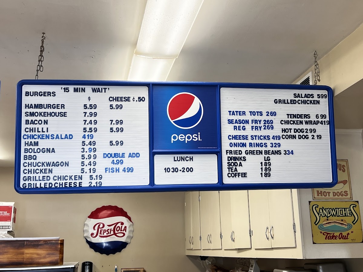 The menu also features hearty breakfast options like 1 egg & bacon or 1 egg & sausage, perfect for those looking to kickstart their day. Add to that a range of classic sides such as onion rings and fried green beans, and you have a comforting meal in a cozy atmosphere reminiscent of childhood gatherings.